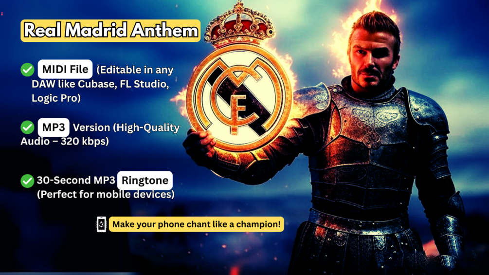 Bring the iconic energy of Real Madrid to your music projects, remixes, or simply personalize your phone with the sound of champions.